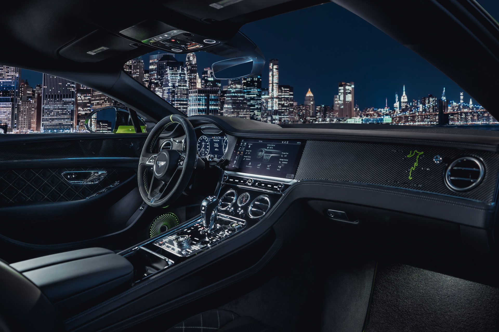 Pikes Peak Continental GT, Acid Green fren kaliperleri, karbon fiber gövde kiti, uyumlu yan aynalara sahip parlak siyah tavan paneli ve Mulliner imzalı özel Radium yeşil boya gibi göz alıcı detaylara sahip.